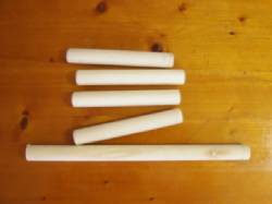 今晩はどうも餃子らしい、買い物から帰った相棒が1mほどの棒を抱えて帰って来て、これを15Cm間隔で4本切って角を丸くしてくれと言われた、何に使うのか不明だったけど、取りあえず指定の長さで4本作って角をグラィンダーで削って丸くして、サウンドペーパーでつるつるにした、その頃お勝手では娘と相棒はキャベツとかをみじん切りにしてボールにいっぱい作っていた、どうやら作らされたのは餃子の皮を作る麺棒のようだ、出来具合は我ながら傑作なので、美味しい餃子が期待できそうだ。