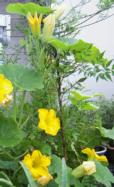 こちらもかなり大きく伸びました、始め朝顔と思っていたけど、花が黄色で小さな花が咲いたので、胡瓜かも知れない相棒と娘が作っているのでよく解らないが、花も咲いたので順調に育っているので、実が付いたら確実に何かわかるんだけどね。