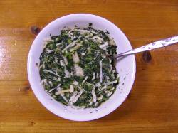 今晩のお勧めの一品は、ねばねばのスタミナ料理で、もろへいやと長芋のトロロです。【作り方】1.もろへいやを細かくみじん切りにする。2.長芋を細切にする。3.両方を混ぜて粘りがでるまでかき混ぜる。4.好みで、麺つゆ、醤油、味噌たれ、などで味付 けする。・食べ方はご飯に載せてたり、付け麺のタレの様 にして食べたりします。