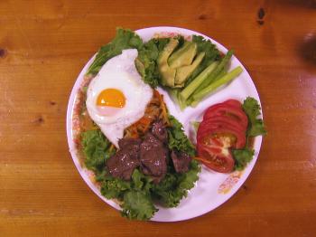 今晩の夕食は相棒もお姉さんも出かけているので、自前で作りました、作ったのは簡単でそれなりに食べられる親子丼で、こつは薄口に作る事です。食べる時に昆布と椎茸の佃煮などを、おかずにしてアクセントを付けると美味しく食べられます。【材料】1.鶏肉適当量 2.玉ねぎ1個 3.玉子2個 4.麺つゆ【作り方】1.お水ちょっと(適当)。2.鶏肉を入れて半分くらい煮えたら玉ねぎを入れる。3.更に玉ねぎが7割程度煮えたら麺つゆで味付けする。4.玉子を黄身が崩れるくらいに軽く混ぜて3分の2をうえからかけて軽く混ぜる。5.最後に残りの玉子をかけて火を止める。