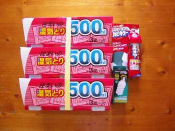 連日の蒸し暑さでいたる所にカビの兆候が出て来た、汗をかいた下着さえも2日ほど洗濯籠の中に置いたらカビが発生した、昔カビが生えた下着から「さるま茸」と言う茸が生えた漫画があったのを思い出した。下駄箱や押入れの中もカビ臭いし、このままだと本当に茸が生えて来るかもしれない危機感に襲われたので、乾燥剤とシェル状のカビ取り剤をゲットして来ました、暫くカビとの戦いが始まる気配がして来た、おまけで省エネ電球も又1個ゲットして来た。