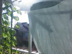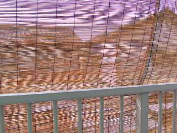 今日もかなり暑くなる予報ですので、ちょっと涼しげに、ベランダにヨシズを張り巡らしました、古き良き時代の知恵ですが、直射日光をさえぎるので少しは室温の上昇を抑えられるのではと期待しています、見た目はたしかに涼しげですけど。