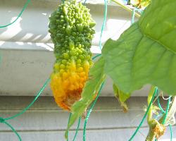 何だかもう少し大きくなってから収穫しようとしていたら、続々と黄色に色付いたゴーヤが出て来た、2日くらいで黄色になって行く、もう少し大きくなってから熟してくれないと食べられないじゃん、とか思うんだけどやっぱり季節とか感じて、黄色になるんですかね、ちょつと解らない世界ですけど。今年初めて作ったって、そりゃーー解らないょ、ごもっともです。