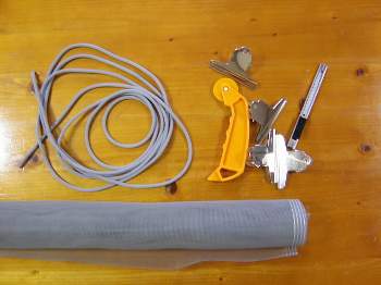 網戸に3ケ所ばかり小さな穴が空いてしまったので、網戸の張替えをしました、今は色々道具も売っているし自分で簡単に張り替えが出来ます、気を付けないといけないのは、周りのおさえのゴムが、3.5/4.5/5.5m の3種類が有るので、どれが使われているか端の部分をちょっと切り取って持っていって、同じ太さの物をゲットして来るのが1番です、後は取り替え方も網や工具を買うと付いているので、見ながらやると簡単です。
