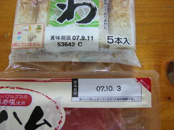 スーパーに寄ったので酒の摘みに生ハムと焼き竹輪をゲットして来ました、ふと竹輪の陳列を見たら賞味期限が5日と7日が目に入った、更に3段に重ねてあったので1番下を見たら、何と11日になっていた敵も考えたなと言う事で、一番下の11日物をゲット更に生ハムも後ろの方から10月3日物をげっと、ちょっと考えたら新鮮物がゲット出来るんだなと再認識した、と言う事は今までお馬鹿さんな事をしていたって事ですね。