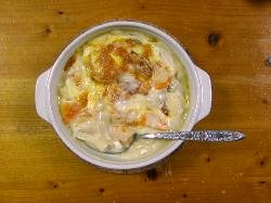 今晩のメインデッシュはグラタンです、一応海老なんかも入っているんですけど、写真では見えないですね、お味の方はクリーミーで抜群の美味しさでした、おかずと言うより、そのまま食べるのが丁度良い味付けで、トロリ溶けたチーズもアクセントになっていい感じでした。