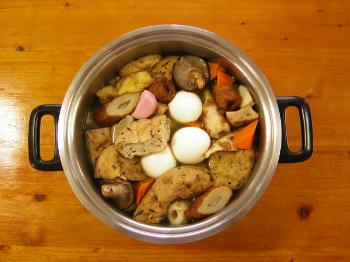 今晩のメインデッシュはオデンです、少し涼しくなって来たので、オデンに熱燗は最高のご馳走です、特に好きな具はアゲの中に餅が入ったキンチャクと大根です、皆さんはどんな具が好みですか..?昼頃に作って一旦冷ませて夕食の前に温めます、これで大根にもしっかり味が染み込んで美味しく出来ます。