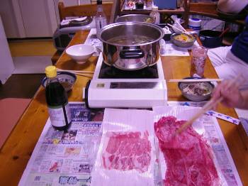 心配していた台風も何とか去って行ってくれたので、今晩は少しリッチにシャブシャブにしました、シャブシャブ用の鍋なんて気の聞いた物は無いので、普通の鍋でコンロはホースノンと言う、いたってオールドエコノミーのスタイルですが、味は美味しかったょ。