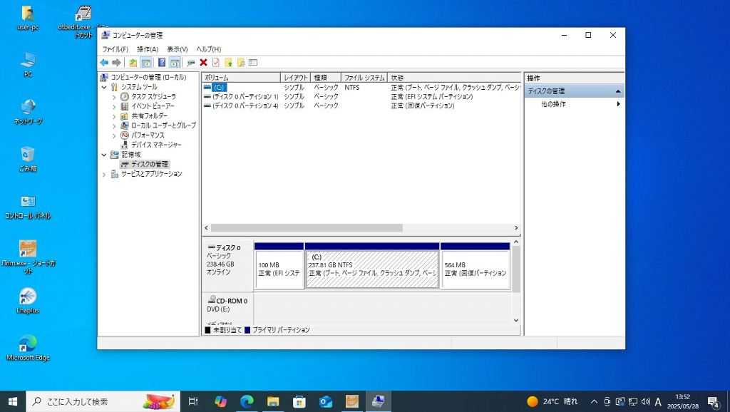 彩の国の今日は午前中曇り、午後から晴れの予報です、部屋は少し明るい状態です。 新しくゲットした PCのディスク管理 Windows11への更新も問題ない様です 無償のクローン作製ソフトも入れました データー消去が終わりましたマウスの右クリックをし、新しいタブで画像を開くと、大きく見れます。新しくゲットした、DELL Optiplex 3070 Win10Pro / Corei5-9500 / SSD256GB / 8GB DVDスーパーマルチドライブ付きに、画面などをキャプチャーするソフトや無償のクローン作製ソフトをインストールしたので、色々テストして見ました、 OSのWindows11へのアップデートも問題なく出来そうです。まだ初期不良の保証期間中なので、すぐにOSの更新などすると、保証が無効になるので、耐久テストと無償のクローン作製ソフトの動作確認を兼ねて、1000GのHDDのデーター消去をやって見ました、データー消去は9時間くらいかかりましたが、順調に消去出来ている様です。Windows11に出来ないPCをお使いの方は注意してください。【対応必須】Windows10を今後も使用する場合は、今すぐ実行して下さい!【ESU】https://www.youtube.com/watch?v=EIHH81UFTR4&t=28s【Windows10終了】古いパソコンどうする?新規・更新・廃棄など全てをプロが徹底解説!https://www.youtube.com/watch?v=R8HRdaR174E本日届いた迷惑メール、絶対にアクセスやクリックは、しない様にしましょう。 迷惑メールの内容【今日の一言】マスゴミが報道しないニュース。【EU激震!イギリス『ロシアは2027年にNATOに宣戦布告するだろう!』プーチンが死ぬまでロシアは戦争を続ける気だ!】もう確定だhttps://www.youtube.com/watch?v=RyJincknOM8トランプに詰められ“拗ねたプーチン”、ついに“逆上空爆”を決行!イスカンデルでスームィ訓練場を空爆、兵士6名死亡・市街地も被害で大規https://www.youtube.com/watch?v=Q7AaUxpiGUs