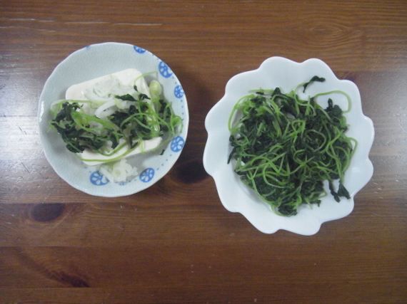 これを1分ほどサッと湯がいて、刻みネギと一緒に冷ややっこに乗せて、食べてみましたら、一味違う美味しさでした。