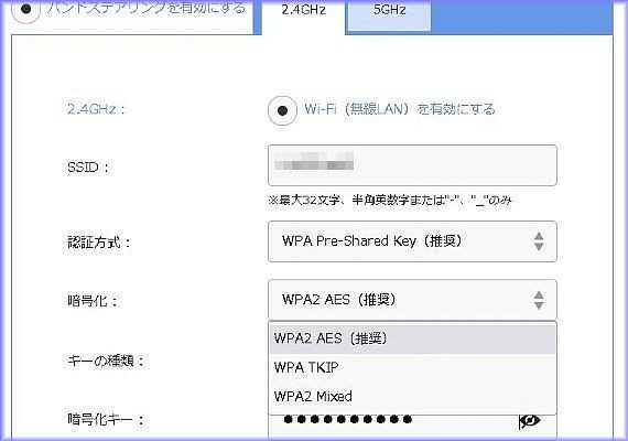変更した内容は、認証方式をWEPからWPAに変更し暗号化をWPA2 AESに変更しました、この変更に伴い、無線LAN接続して使っている Fire TV Stickや防犯カメラ、Anycast、パソコンやもう1台のプリンターなどの機器をすべて、変更する必要がありちょっと大変でしたけど、これで家庭内無線LANのセキュリティーも強化された状態になったので、少し安心出来る様になりました。