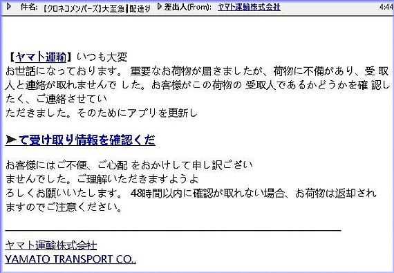 本日届いた迷惑メール、絶対にアクセスやクリックは、しない様にしましょう。