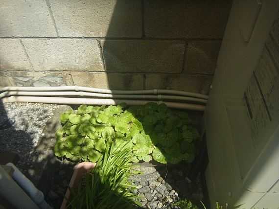 雪の下が植えているプランターからどんどんランナー伸ばし、エコキュートの下まで入りこんで来たので故障の原因などになるといけないので、少しすっきりさせました。