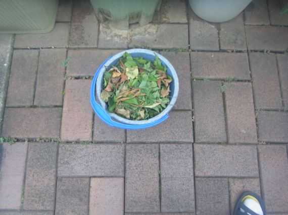 燃えるゴミに出すためにさらに細かくカットして、バケツに入れて置きました、少し乾燥したらゴミ袋に入れて、燃えるゴミに出します。