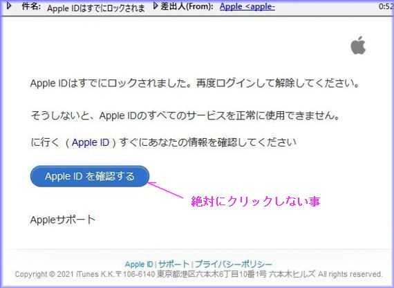 本日届いた迷惑メール、絶対にアクセスやクリックは、しない様にしましょう。
