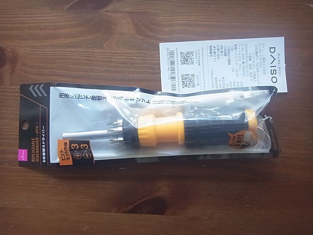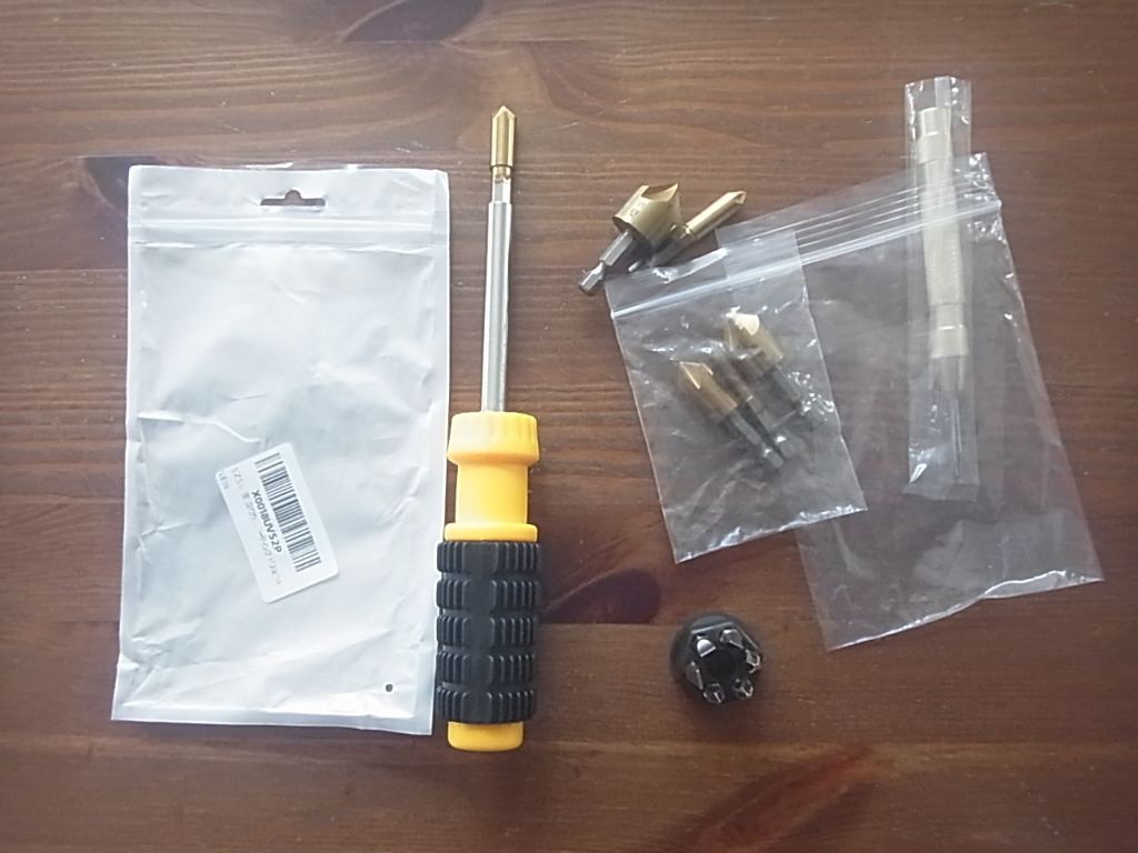 ネットでゲットした面取りカッター は手動で使う事が結構多いので、何か良い方法はないか調べていたら、100均で売っている、6本差替えドライバーの先端部分が六角で、丁度同じ寸法なので、取り付けて使える何て記事を見つけたので、ゲットして来ました。