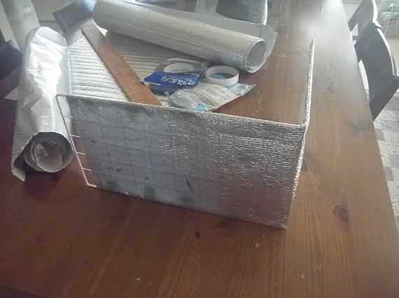 出窓の日除けに100均のキッチン用アルミシートを張りました