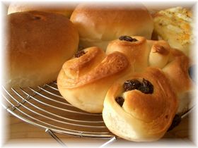あんぱんレーズンパンたまごぱん 熊本にやっとABCクッキングスタジオができました。体験教室をやっているとのことで、さっそくパン教室に参加。今回は、びっくりするほど簡単に・・しかも、短時間で焼けちゃいました過去に自己流で作った手こねってなんだったの??もぉう、これだったらできる!!しかも、フワフワだしぃお持ち帰りは3つしかなかったのでダンナ様とあっという間に食べちゃって。今日は朝から焼きたてパンが食べたいというので6時半に起きて作ってみました。過去に作ったものって、発酵を自然に任せていたので教室で習ったように・・・初めて、レンジ機能の「発酵」キーを使ってみました。そのせいか、イースト菌の独特なツンとくる臭さがないし微妙にパサついていたカンジも解消!!何より、15分もコネコネしなくていいし。チョー楽勝!!!今日は、突然のことでハムもウインナーもなくてタマゴパンを作ってみたけど、おいしかった。ダンナ様の好きなあんぱん。ワタシが好きなレーズンパン。しばらく、はまりそうぅぅ