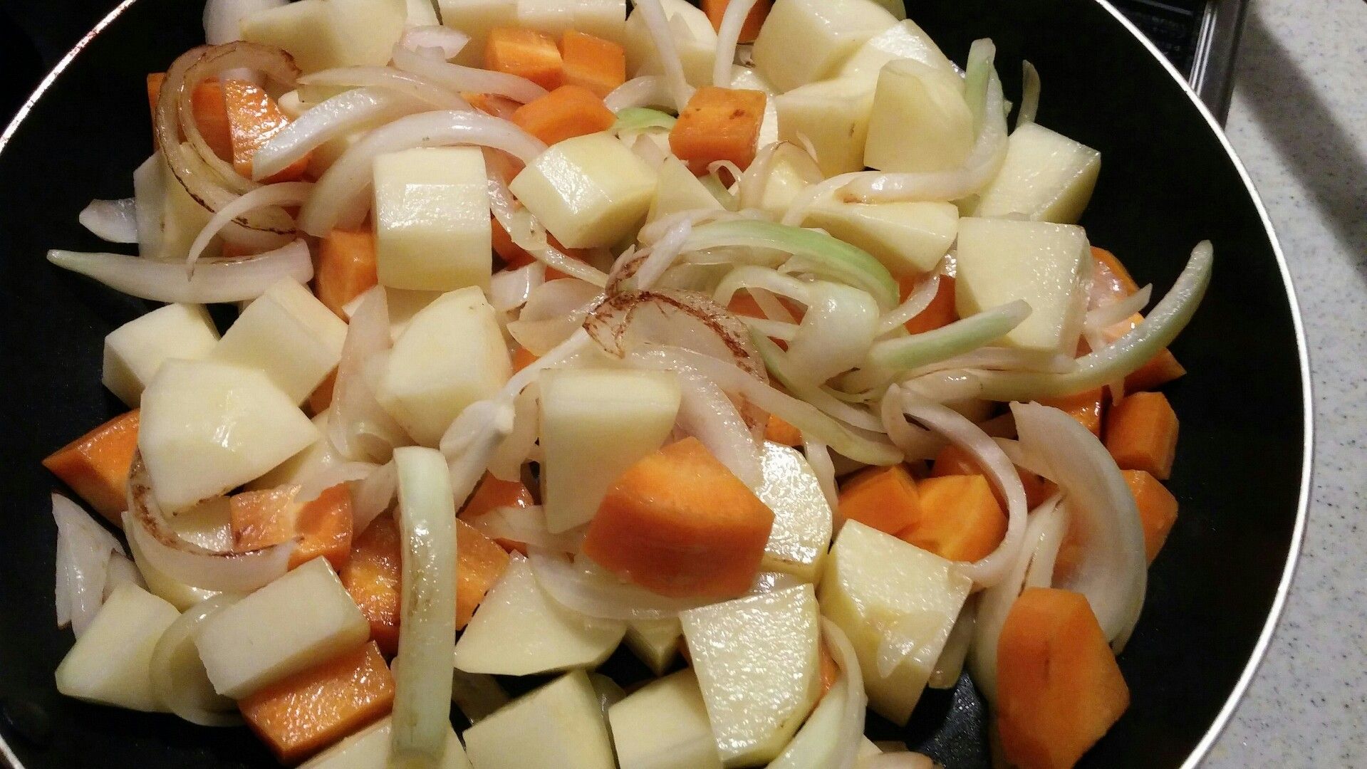いつものように野菜を炒めて、お肉を焼いて、お肉は今日は鶏肉。