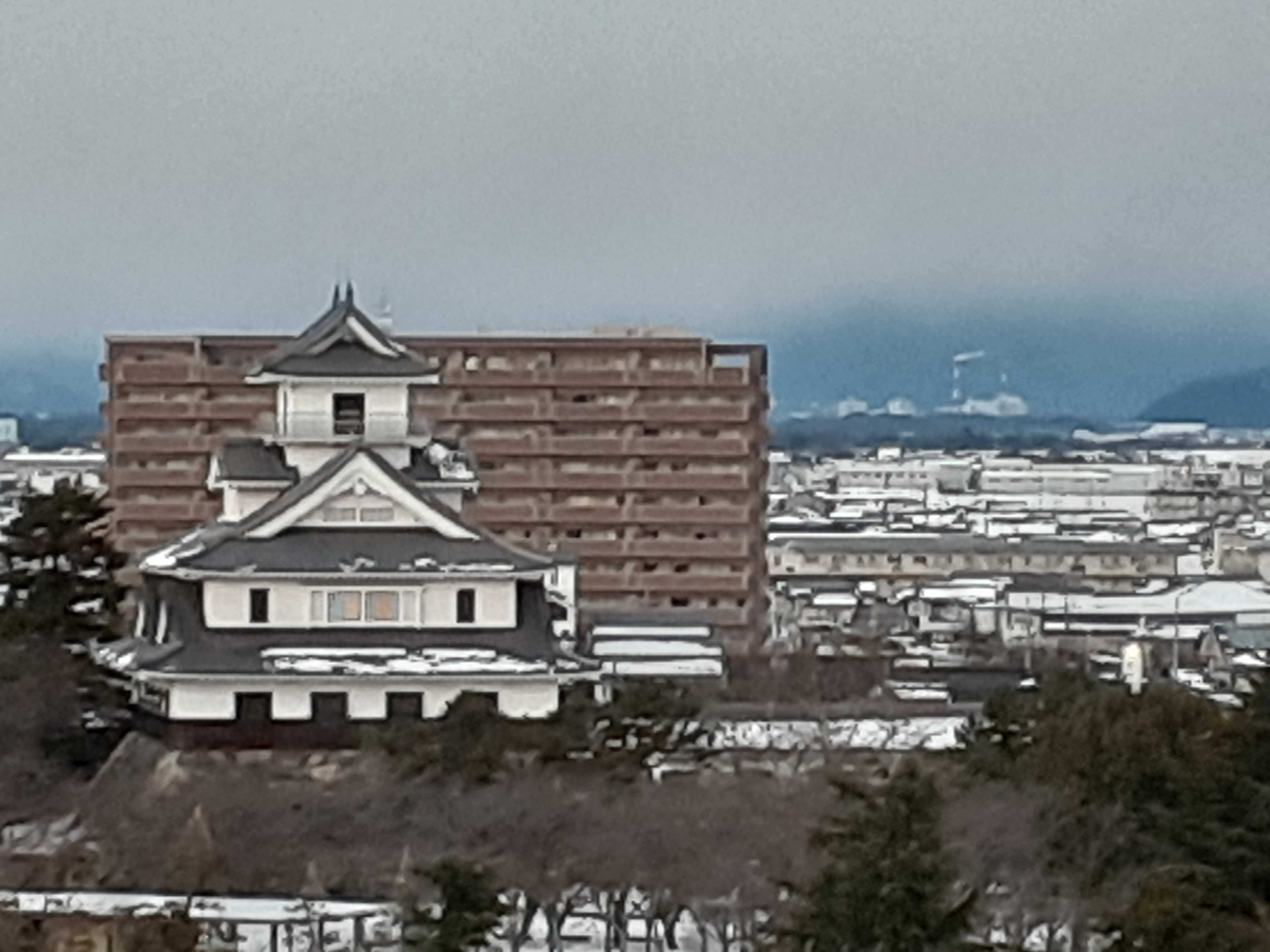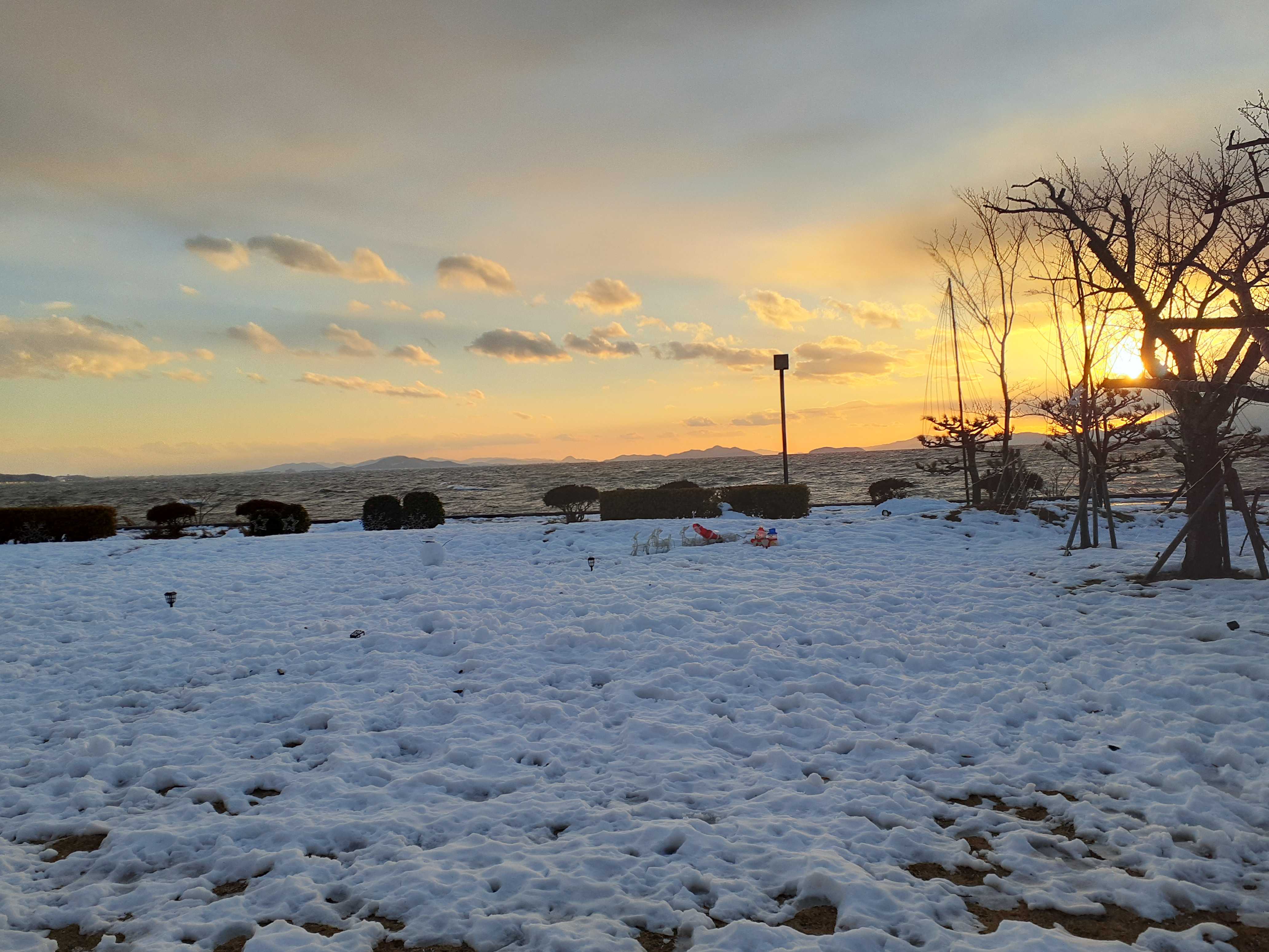 ホテルの前はすぐ琵琶湖で、雪がまだ残っていました。