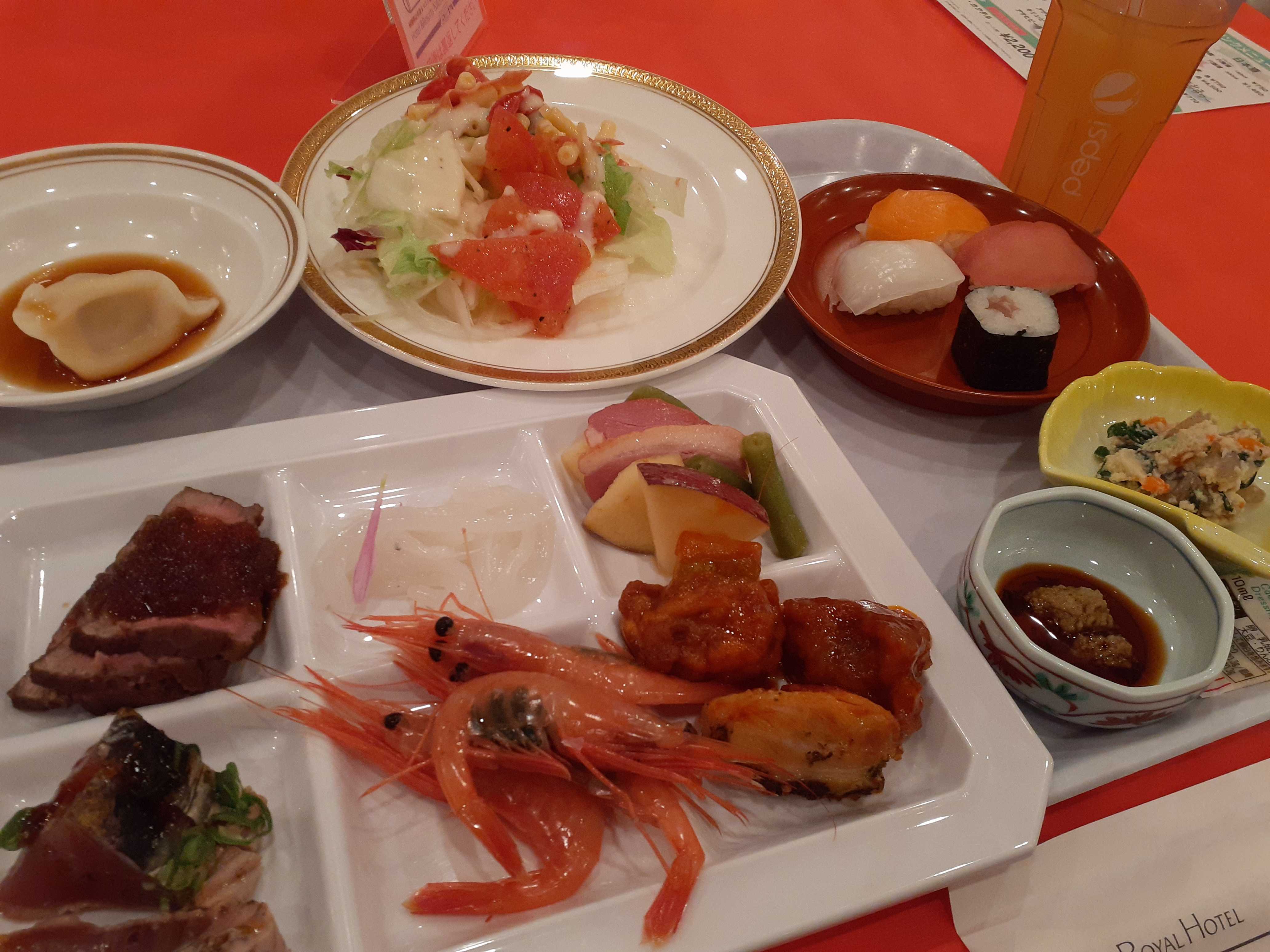 お寿司、お刺身、天ぷら、茶碗蒸し、中華、和食、ステーキ、色々あって、大満足。