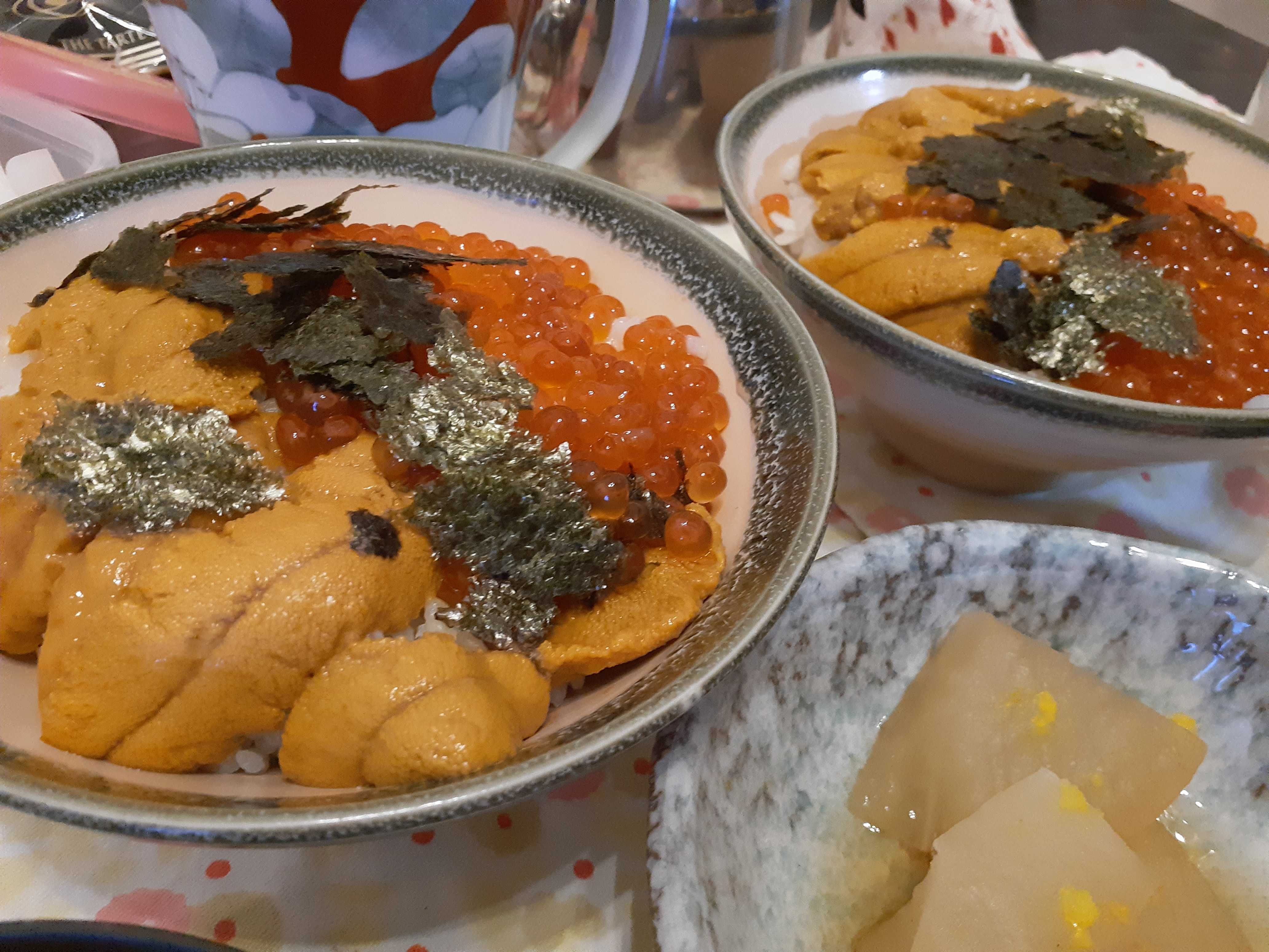 ふるさと納税返礼品の雲丹とイクラで『うにいくら丼』。北海道の食べ物は、何でこんなに美味しいの。