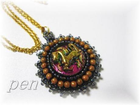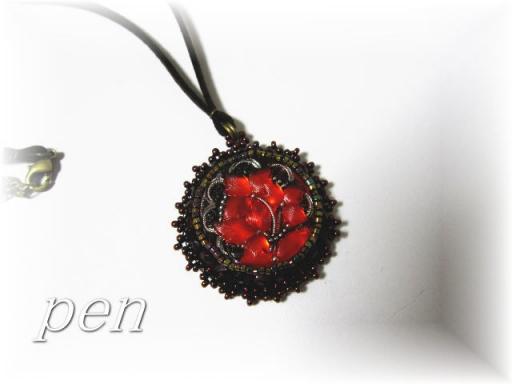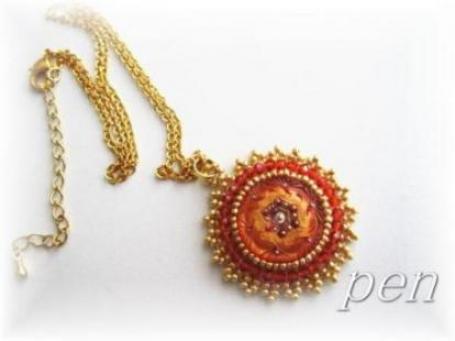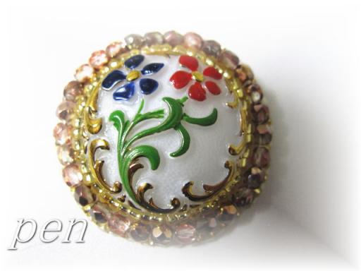 レネットさんのチェコボタンを使ってネックレスを作成以前から興味のあった、ビーズ刺繍を試してみました。ステッチで囲むと、周りがビーズで隠れてしまうのよね。だから、外回りをデコる感じで作りました。真ん中の赤い花ですが、光の角度で、オレンジ色に光ったりします。とても綺麗なボタンでした(^^)