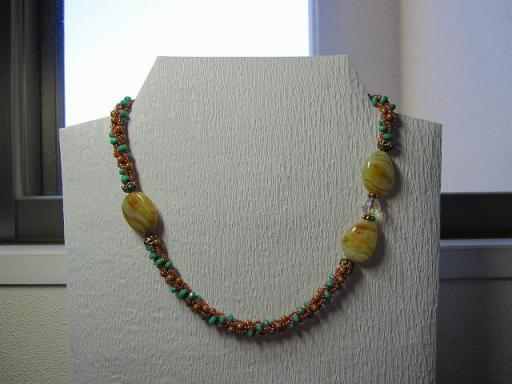アクセサリー通りで買った、チェコボタン・丸小・大きめのアクリルビーズを使って、クロッシェネックレスを作りました。自分では結構イケてると思うんだけど、色合いが微妙な気もする・・。まぁ使うけど♪