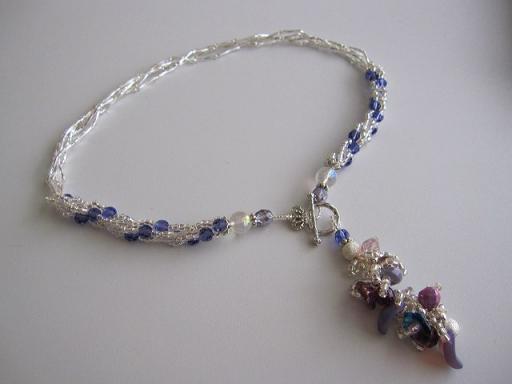 久々の更新です。ここんとこビーズを眺めながらも作りたいものが思い浮かばず、休んでました・・。仕事は行ってましたが(^^;)昨日から二日かけて、クロッシェネックレスを作成。やはり夏を意識してシルバーを使って、後は去年買ったチェコビーズを使いました。ネックレス部分は#5000です。数年前の福袋に入っていたものです・・(^^;)★マンテル★は★アクセサリー通りさん★で購入したもの。前回のゴールドに引き続き、シルバーもキラキラしててしっかりしててとても気に入りました(*^^)以前山のように買っていたツイストビーズも半分ほど使いましたC=(^◇^ ; ホッ!しかし・・・結構な量のガラスビーズを使っているので、結構重みがあります。引き締めてはいるつもりなんですが、そのうちビーズが寄ってきて、レース糸が見えちゃいそうで、ちょっと怖いかな・・(^^;)先日、地区の公園清掃に行ってきました。ほとんど草むしりだったんですが。草むしりなんて何年ぶり・・?屈んでの作業がとてもきつくて・・(><)その日は一日疲れたまま動けなくて、翌日と翌々日は筋肉痛で「アタタタ・・」と言いながら動いてました。今日はかなり楽になったから良かったけど。組長はやはり大変です・・(^^;)