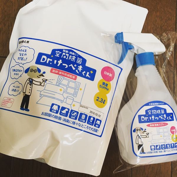 LUTECIA株式会社さんより 空間除菌 Dr.けっぺきくん をご紹介します。けっこう有名なので、もしかしたら見たことある人もいるかもしれません。オールマイティな次亜塩素酸水です◎私自身が看護師として病院勤務をしているので、その効果はすでに把握済みです。病院では、あらゆる場面で物品の消毒や除菌のために使われます。こちらの 空間除菌 Dr.けっぺきくん は、自宅で使うことができるので助かりますね。その次亜塩素酸水の効果ですが▶︎テーブルはもちろん、キッチン・お風呂・トイレ・冷蔵庫・ベビー用品の除菌▶︎ゴミ箱の消臭・ペット臭対策にも最適▶︎枕やシーツ・カーテンの消臭などなど、幅広ーく使えます。水垢発生予防のために、加湿器に入れて使っている人もいるみたいです。言われてみれば納得ですね。私も真似したいとおもいました。さっそくこのけっぺきくんスプレーを噴射し、家の中のものを一通り除菌してみました。テーブルカーテンその他トイレ、お風呂場、寝具などなど…。一気に清潔空間になりました♡が、匂いを嗅いでいたら明日からの仕事を思い出しました。笑こちらのけっぺきくんですが消臭実験でも、あのアンモニア臭が見事に消えたみたいです。ペットを室内で飼っていると、どうしてもおしっこの臭いがあるので、来客など気になりますよね。かといって、香り付きの消臭スプレーだとかえって変な臭いになるし、悩んでいる人は多いと思います。でもこちらのけっぺきくんは、噴霧して少しの間は次亜の匂いがしますが、気づけばほぼ無臭です。かなり優れものですよね。次亜塩素酸と聞くと、強い成分だろうから健康面に影響はないかな?などの心配もあるかと思いますが、問題ありません。免疫菌や有機物と接触すると水に戻る性質なので、環境にも優しいです。さらにこちらのけっぺきくんですが、ちゃんと作りたてを発送しているそうです。病院でも、除菌力を高めるために次亜塩素の原液をその都度水で薄めてから使っています。こちらのけっぺきくんも同じ作り方をして商品として届けてくれているので、いつ薄められたのか分からないものよりも、ちゃんと信頼して使えますね。これ一本で家中が清潔になる素敵な商品です。 お得に購入できるプランもありますので、ぜひのぞいてみてくださいね✨ 空間除菌 Dr.けっぺきくん ←公式ページ