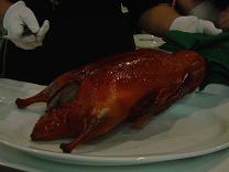 食べに行ってきました。なんせ、GCまでは一時間の小ドライブなため、今回は家を出る直前にお店に電話をかけました。ちゃんと『北京ダック』の予約が入ってるかどうか!前回は、予約も入っていなかったんですが、お店のお兄さん曰く、『北京ダックはクリスピーさが命だから、今日みたいな雨の日はおいしく食べれないよ。』と。本日、久しぶりの晴天です!美味しいはずでしょう!と、前菜にスープと春巻きでお腹を軽く満たし、やってきました、鴨丸ごと!目の前に、焼き立て!!!って感じの鴨が運ばれてきます。皮を目の前ではいでくれます。(繊細な私にはチョッピリきつかったですがね!)そして、1匹から10皿出来る訳です☆二人で、スープ(大)と春巻きを食べ、ジャスミンティーをたらふく飲んだ上で、一匹の鴨☆幸せ♪が、2コース目のサンチョイバオx4にて。チョット満腹感感じすぎてしまいましたとさ。美味しかったけれども。ここのサンチョイバオは、少し大きめに切った玉ねぎがなんとも素敵な歯ざわりと甘さを醸し出してておいしい☆最近の、腹八分目作戦→胃縮小作戦が効いてるのか、全然食べれなくなった私です。こんなおいしい北京ダックを前に悔しいです!が、次はもっとたくさんの人と来て食べたいなぁと思いました。Mewさん、お帰りお待ちしております。