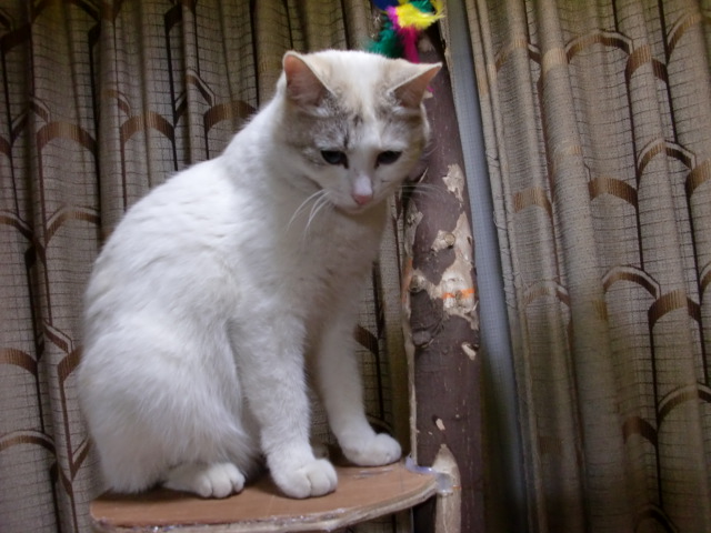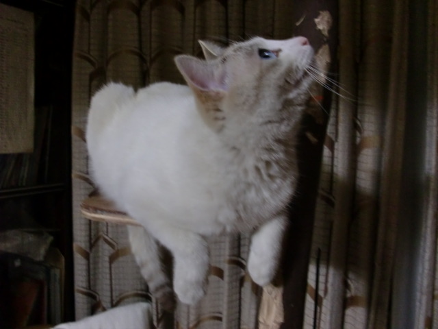 父が キャットタワーを作ってくれました高い所から 外の景色を じ~っと眺めてました