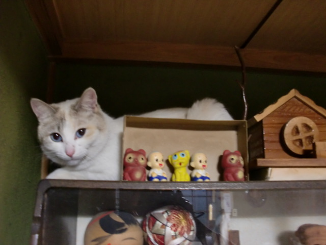 むか~しから置いてある人形ケースの上にはなちゃんが登って 最初は ゴソゴソ動いてたんですが いつの間にか 居座ってました