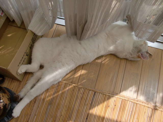 今日は 朝からよく晴れてました はなちゃんは クーラーのない結構 陽のあたる部屋で寝てました