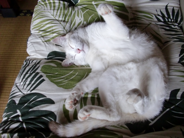 暑い 昼間でもクーラーのない部屋でスヤスヤ よく眠ってます 人間は夜でも クーラーなしでは寝られない日もあるのになぁ