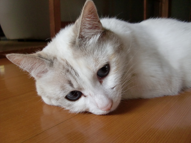 最近は 床にぺたっと座ったり 寝転んだり 冷たくて 気持ちいいのかな