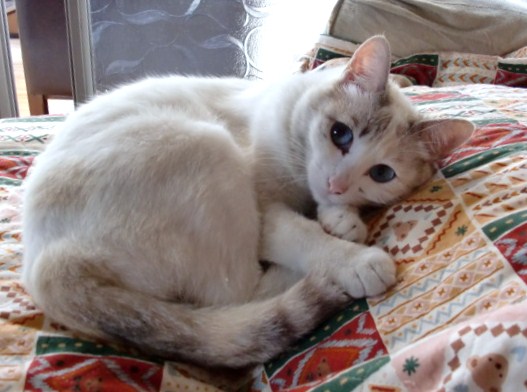 ちょうど はなちゃんがお休み中に ガラスの模様が影になって 身体に映ってました