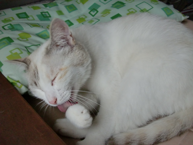 外に出たはなちゃんを捜してたら 雨よけの屋根の上にいました念入りに 足の裏までなめておりました
