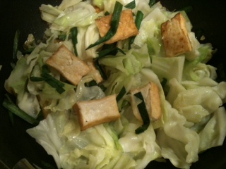 料理は基本的に手抜きです。さくっと作れる料理が好きですね。というか根が無精なんでしょうけれど。そんな訳で食卓はいつも微妙な感じです。そんな微妙な食卓を大胆にも紹介してしまおう、という・・・。というわけで、今日の手抜きご飯は、厚揚げとキャベツ炒めです。材料は、キャベツ(適当)、厚揚げ(一枚)、ニラ(余っていたので使った)、と調味料ですね。残り物でもおいしくいただけました、という一品です。うーん、もっと美味しそうな見た目の写真が必要ですね。食べると意外と美味しいんですけどね~。