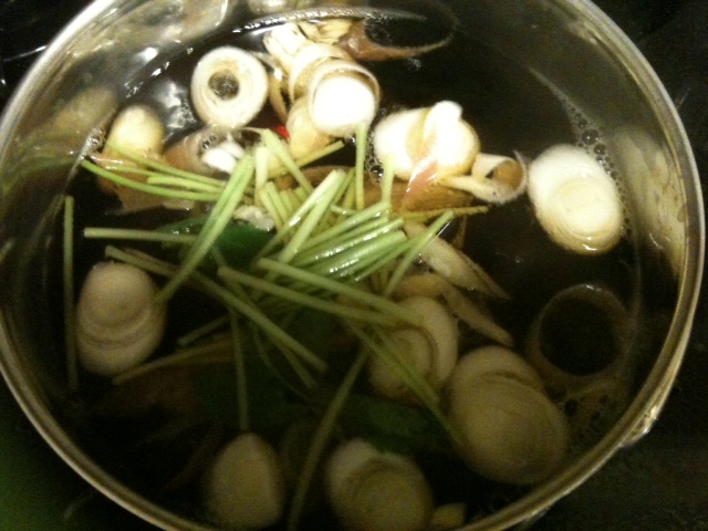 みょうがが大好きです。というわけで、割と浅漬けとか作ったり、みょうがのお吸い物とか作ったりします。具は、みょうがとかまぼこ(見えてませんけど)、それに三つ葉ですね。みょうがが嫌いな人は三つ葉を入れるとあまりみょうがが強くならないので、いいかもです。私は普段は三つ葉を入れずにもっと大量のみょうがを入れて作ります。写真は手元が狂ってしょうゆを入れすぎちゃったのよね、でも、ま、いっか、なお吸い物です。