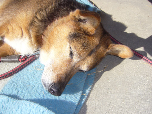 今夜も8時過ぎに納屋をのぞくと、暗い中に座布団のような塊が。「また寝床をほおり出してから」と思いながら、片付けようとひざまづくと。「ワグ!」という声が。どうもワンコを踏んづけたようです。