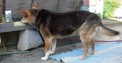 朝、ラジオで「チャロ」を流しながら、物を干していたら、ペルがラジオに近寄って来ました。