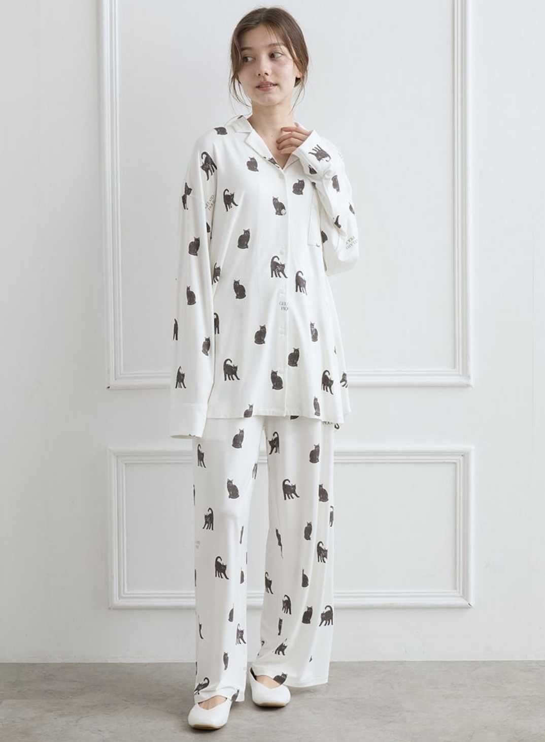 HALLOWEEN CAT総柄 のトップスとパンツ。