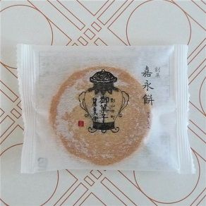 嘉永餅はもちもちした食感の生地に粒あんと松の実が入っていて、バターの風味がします。