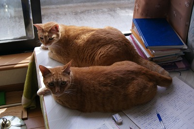 昨夜は珍しく暑くなくて、私にとってホント久しぶりに夜中に目が覚めることなく、朝まで気持ちよく眠れましたあー、こんな朝を毎朝迎えることができたらいいのになあ。。今日は水曜日ですね。昨日PCで、ふと目にした記事です。サントリー食品インターナショナル株式会社の調査によれば、「疲れた」 というワードがツイッター上でつぶやかれる回数が1日平均2万7241回にのぼり、約3秒に1回つぶやかれていることになる。特に水曜日に 「疲れた」 つぶやきが増加する。また 「眠い」 というつぶやきは1日平均2万8744回となり、曜日別の増減も「疲れた」と同じで水曜が多い。週の真ん中に疲労感を感じる人が多いのではないか。ということでした。ちなみに私個人の場合、現在は仕事が激減して少ないため、家のことや仕事で疲れるということはありません。ただ今年の夏は特に、様々な理由で夜中に目が覚めることが多く、慢性的な寝不足になっているだけです。それでも昔の正社員だった時代を思い返すと、やはり、日曜日の夜は 「あー、また明日から・・・」 と憂鬱になり、金曜日の朝になれば 「よしっ、あと1日!」 と思えるので、木曜日の夜を越えるまでは毎日キツかったなあ。。という記憶があります。そしてあの頃は今のようなネットがない時代だったから、「不特定多数の誰かに、自分の思いをつぶやく」 ということはないものでした。ちょっとつぶやきたい自分の思いがあっても、身近な誰かに言えないときもあったりしたので、「今の時代っていいなあ~。。」 と、ココでつぶやいてしまいます。「へへっ♪ お邪魔しまーす」我が家の “癒し隊” のメンバー、リュウ君が、2階のニャンズの部屋に遊びにきました。ねえ、リュウ君。 後ろを向いていてもね、リュウ君がどんなお顔をしているのか、わかるのよ。“癒し隊” は、こうして笑いを誘ってくれます。さて、疲れて帰宅して夜は、TVを観たりPCやゲームをしたりして、皆さんそれぞれにくつろいでいらっしゃるでしょうね。今日は夜10時から 歴史秘話ヒストリア があり、テーマは私の好きな幕末でした。 自分の興味あるものを、まったりと楽しむ好きなことやって少し何かで満足すると、また次への活力が湧いてくるものなのですね“癒し隊・隊長” の小太郎と康太郎。夜寝ようかと思ったら、枕元でこんな可愛いことをやってくれるので、また起きてカメラを撮ってきて、記念撮影タイムでした