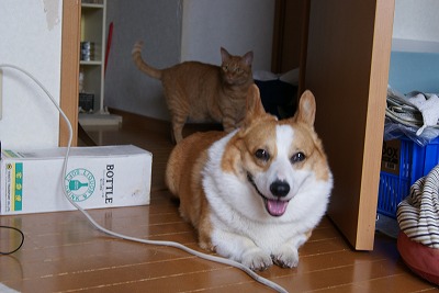 最近なにかと気になるTV番組が2つあります。番組スタート時は大好評だったのに、3ヶ月を過ぎて4ヶ月めあたりから評判がダダ下がりのNHKの2つのドラマ。『江』 と 『おひさま』 です。私も思うことが盛りだくさんにあります。「え??」、「あー、またか。」 と思いながらドラマを観ています。(でも納得いかないまま、結局はずっと観ているのです)そしてこれらは、また考えをまとめてからネタとさせていただくことにいたします。さて今日は天気予報で 「大気の状態が不安定」 で、ところにより激しい雷雨があるという日でしたこの強い雷雲が今日は朝から夕方までずっと、断続的にこちらのエリアを通過していきました。この予報を聞いたときにイヤな予感はしましたそう、我が家には雷が大嫌いなお方がいらっしゃるのでこのお方 (リュウ君) です。喧嘩っぱやいくせに、雷をはじめ音には超ビビリ犬になります私がPCで雨雲の様子をチェックしていたら、甘えて膝に乗ってきました。でも今日はチビ子嬢も、部屋の奥に隠れたがりました。いつもは雷はさほど気にしない子なのになー。チビ子嬢 : 「今日のお天気は、なんかイヤだわ。 ねえ、えみりーさん。 アタシも一緒にここにいるわね。」~~いいけど、PC前の場所は私に返してほしいな。雷にパニック中のリュウ君は、私の膝の上にいます。ハアハアと息が荒くなってます。雷雨が始まった朝10時頃から夕方までずっと、この状態でした。チビ子嬢もこんな隅っこに隠れてしまいました。本能で雷からいちばん遠い場所に逃げたようです。ワンコ組とは対照的に、お外の天気を全然気にしていない小太郎。お外に出たことがないから、雨に濡れる不快感も雷の怖さも知らないからでしょうね。いいです。小太郎はお坊ちゃまのままで