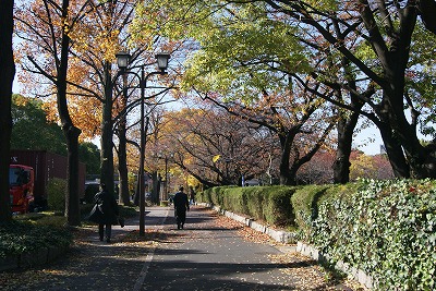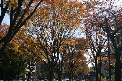 今日は太陽が半分くらい顔を出したので、一日中ずっと曇りの昨日ほど寒さは感じませんでした。でも、やっぱ夜になると寒いか・・・今日はこの家の点検があって業者さんが来ていて、私は朝からバタバタしていましたいえ、日頃から綺麗に片付けて掃除してあれば、いつ誰が来ても、何も慌てることはないのですが。。11月後半に撮った紅葉の写真がいっぱいあります。人の気持ちはもう夜のイルミネーションに移っていることでしょう。でもこのままPC内でお蔵入りも寂しいので、UPしちゃいます。「晩秋の昼の風景」 としてご覧いただけると幸いです。名古屋城の駐車場に停め、お城に入る前に少し外を歩いてみました。このときちょうど1時前だったので、食事を終えて職場に戻るところと思われる方がたくさん歩いていました。晩秋といえば、紅葉もいいけど、私はこのイチョウの黄色も大好きです。青空を背景に、この秋で最高に綺麗な黄色を見ることができましたでもこのときはなぜか、黄色と黄緑のミックスがとても綺麗に思えました。歩道橋に上がってみました。 ココ です。上の画像が、名古屋の西に向かう国道22号線。下の画像が名古屋の南に向かう道で、このまま進むと 名古屋市科学館 や大須観音 に出ます。歩道橋を官庁街に下りてみました。膝元には、街の緑に秋の落ち葉が添えられていました。