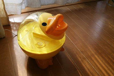 今日はなんか急に寒くなった一日でした。天気予報で 「真冬用のコートを」 と言っていたのが本当だったと、実感しました。特に夜、の散歩に出たときに。吹きつける風が冷た~~いさて、先日のゆるキャラコンテストで栄えある今年の優勝者となった、愛媛県今治市の バリィさん 。私はニュース記事で初めてこのお方の姿を見て、一目で 虜 になってしまいましたイラついてとがった気持ちを瞬時に丸く柔らかくしてしまいそうな、どっしりしたユルさうーん。。。今の私が求めているものかしら。実はバリィさんのことが話題になる少し前、私はホームセンターで衝動買いしてしまったものがありました。それが コレ です。これは加湿器です。動物さんが多い我が家は、家のいたるところに水が置いてあるので、ふつうの家より湿度が自然に高くなっていると思います。それでも、なんかついこれを買ってしまいました。加湿器の種類はいろいろあり、ふつうに大人っぽいデザインのもありました。でもなんか、これが欲しかったのですスチームが見えるよう、TV画面の前に置いてみました。容器のふちに空気の泡が連なっています。中に張った水に、窓の外の風景が映り込んでいます。ピンクはバランスボール、ブルーはのフードが入った容器と、よく見たらいろんな色がある我が家です。要するに、色もデザインも統一感ナシ。でも、いいです。 明るい気持ちでいたいから手前のボトルは、加湿器に入れる香料(ホワイトローズ)です。
