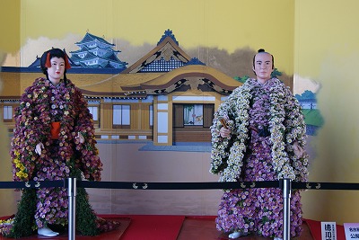 先週の後半から寒い日が続いていますね今日も一日中、冷蔵庫のような空気でした。昨日降った雪もまだ一部が溶けないままなくらいに。日陰になる場所などは凍結したままになっていると思うので、皆様ご通行の際はどうぞお気をつけてさて、12月もどんどん日が進んでいきます。あと3週間でもう新しい年ではないですかこの秋に見た美しい景色をご紹介できないままPC内で眠ってしまうのはちょっと寂しいので、やや時遅しですがUPいたします。11月の終盤に 名古屋城 に行って見てきた、晩秋の風景です。では、どうぞご覧くださいませ11月の終わりといえば、いつも菊人形展をやってます。でも人形になっていたのは門にあった2体だけで、後は違った形の展示でした。菊という花は今までそれほど素敵とは思わなかったのですが、この展示を見て考えが変わりました。こんなにも立派な大輪もあるのですね。合掌作りのミニチュアを、色とりどりの菊で飾ってありました。晩秋といえば紅葉だけど、やはり花の色はいいですね。大きな石がおいてあり、「篠島の矢穴石」 と説明がありました。名古屋城を築城するにあたり、 篠島 からも石を運んできたといわれています。篠島~(船)~熱田の湊~(船)~堀川~名古屋城、という方法です。では、その名古屋城を眺めながら、庭園を散策してみましょう。
