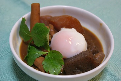 12月も後半になり、すっかりこの時期らしい寒さになってきました。そして寒い時期の料理といえば鍋♪、という方が多いと思います。ただ私の場合、鍋ではなくて時々ですが、思い立ったらムショーに食べたくなるものがあります。それは赤味噌料理時折り他県、というか濃尾平野と三河エリア以外の方から、「赤味噌料理は甘辛いだけで、くどくて食べられない」 という話を聞きますが、たぶん食べた店が良くなかったのでは?と思います。ちゃんとした店では、肉や魚でしっかり出汁をとっているので、一見こってり&くどいだけに見えても、食べてみれば出汁の味を感じつつ赤味噌の風味を味わうことができます。これは愛知県人のソウルフードいえ、単に好みの問題ですが、私が衝動的に食べたくなる料理です。保存が利くという点でも嬉しいものです。1日目。まだ味噌の汁はさらりとしています。肉は鶏肉、豚肉、牛肉、スジ肉などなんでもOKですが、このときはホルモンでやってみました。スジ肉やホルモンは臭いをとる下処理が面倒ですが、味わいは強いです。卵は中で煮込んでありますが、まずは温泉たまごバージョンで。肉と一緒に煮込んだ卵です。このときの味噌の汁は、カツの味噌ダレにも使えます。2日目の煮込みです。味噌がこってり&どろりとしてきて、赤味噌料理らしくなってきました。卵にもしっかり味がしみこんでいます。コレが食べたかったんだ~